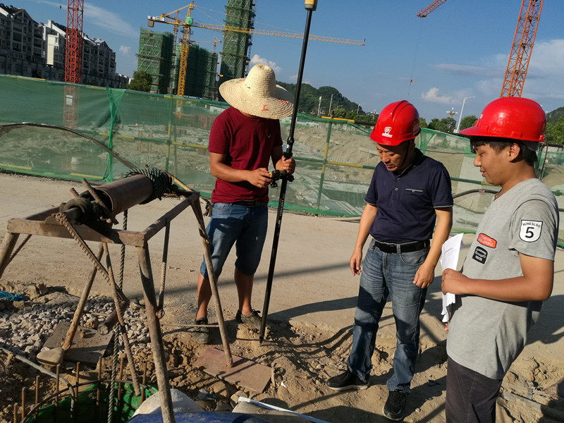 屯调所勘基七公司目前承接了黄山市金瓯徽府水源热泵供水工程抽水试验项目,共施工3口试验井,1口井做抽水试验,另2口做回灌试验,要求72小时不间断试验,为此七公司组织了4个年轻技术员分两班作业。七月,赤日炎炎、骄阳似火,气温达40度,地表温度更是高达50度,屯调所勘基七公司的年轻人就是这样坚守着机井,一天24小时不间断作业。七公司经理郭昌宏多次前往现场察看,为施工现场添置了遮阳伞,并给值班人员送去西瓜、矿泉水等。郭经理一再叮嘱现场值班人员一要注意安全,防止中暑和坠井,二要认真仔细做好记录。