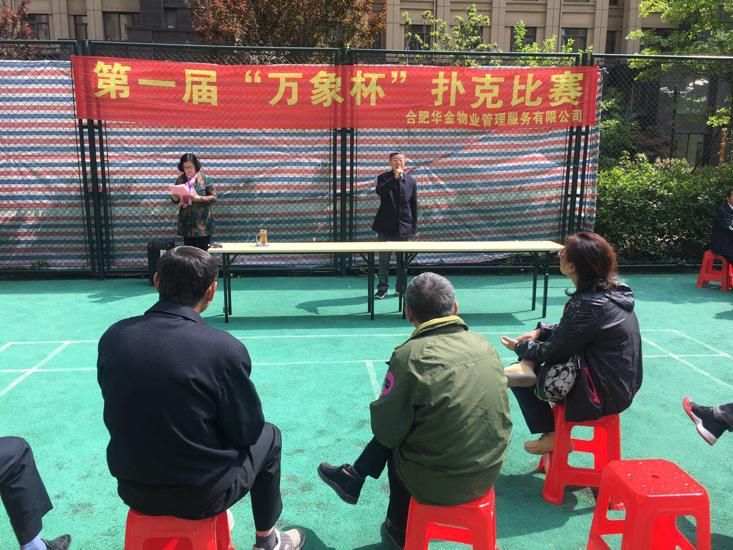 为迎接“五一”国际劳动节,丰富小区居民文化生活,4月27日下午,华金物业联合业主委员会在万象公馆小区网球场举办首届“万象杯”扑克比赛。
