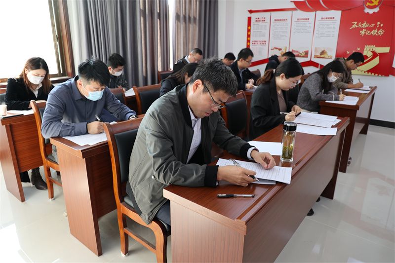 本次竞赛由地勘集团党委所属4个支部分别组队参赛,采用现场笔试方式进行,统一命题、统一笔试、现场改卷,按笔试得分高低统一评定与颁奖。试题由单选题、多选题、填空题、判断题和论述题组成,竞赛内容涵盖中国共产党历史和《党的十九届六中全会<决议>学习辅导百问》《习近平谈治国理政》第四卷内容。