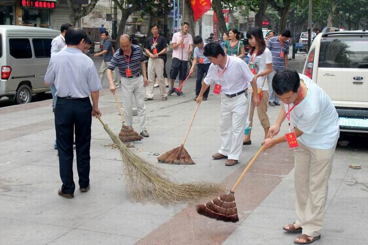 三是开展环境保护服务。该队党员志愿者在天长路与建设路主干道开展“门前三包”服务活动,对主干道两旁栏杆、玻璃、墙壁、路灯杆进行清洁,并对随地吐痰、乱扔垃圾等不文明行为进行劝导服务。