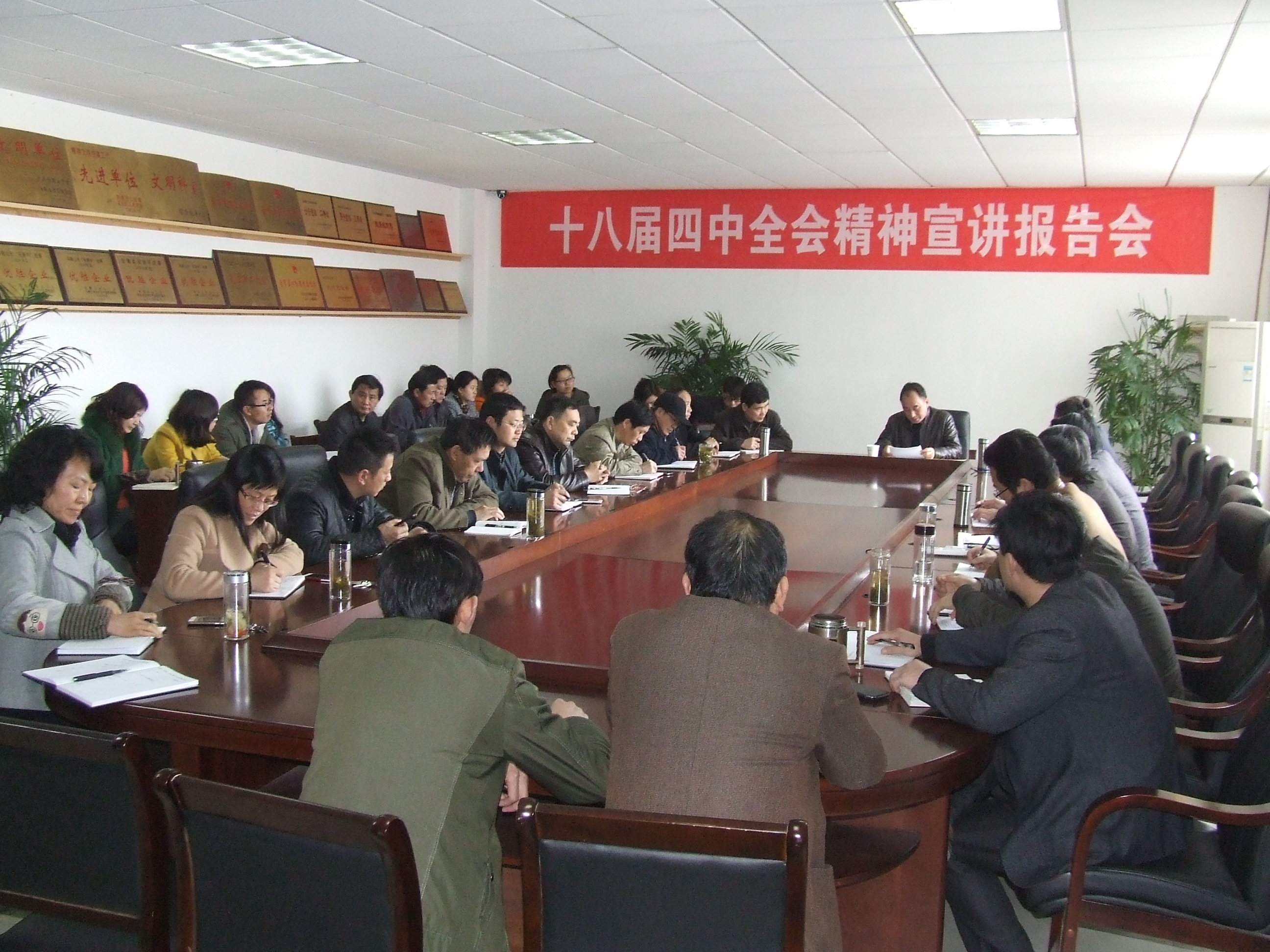 3月24日下午,马鞍山市委讲师团专家宣讲团成员、市委政法委副书记张玉科到综合大队进行十八届四中全会精神宣讲,为该队地质人员送上了权威、准确的四中全会精神解读。该队党委中心组成员、机关及二级单位党员干部40余人参加了宣讲报告会。