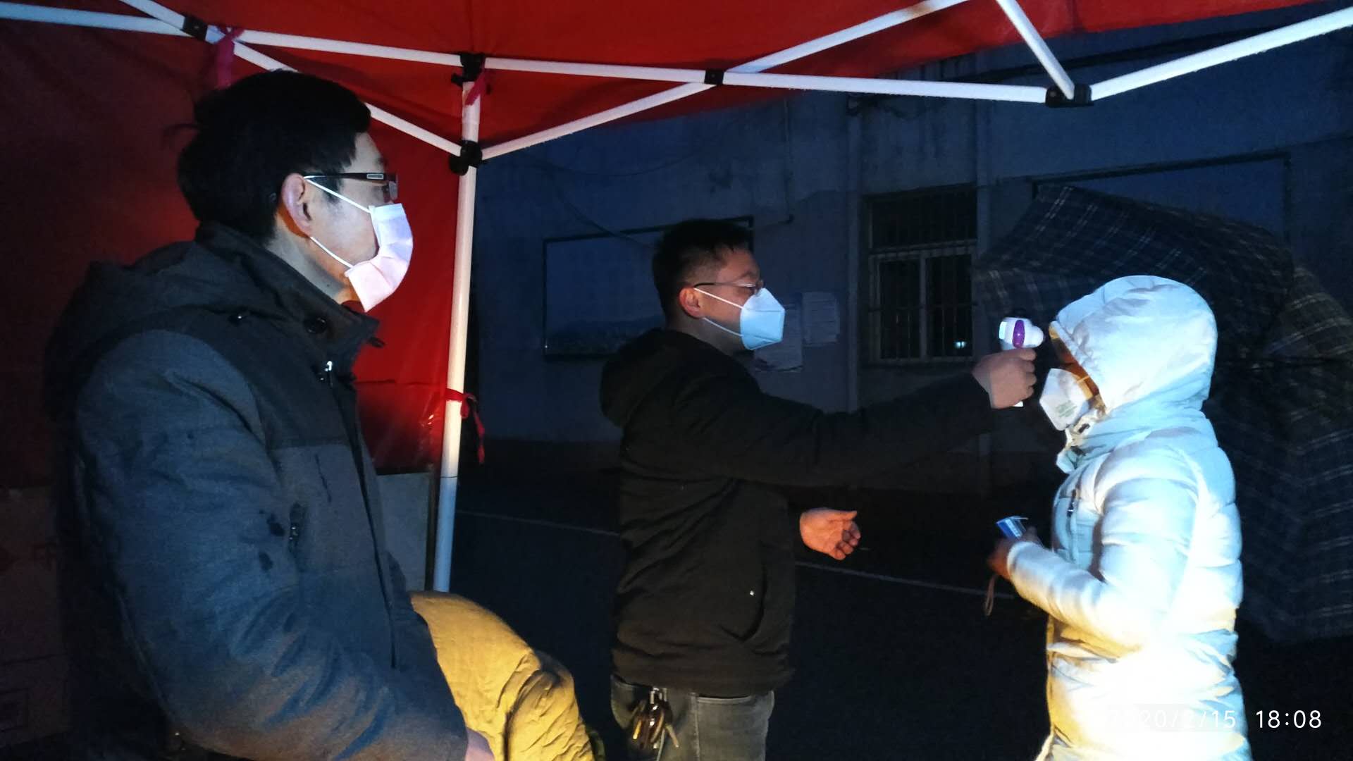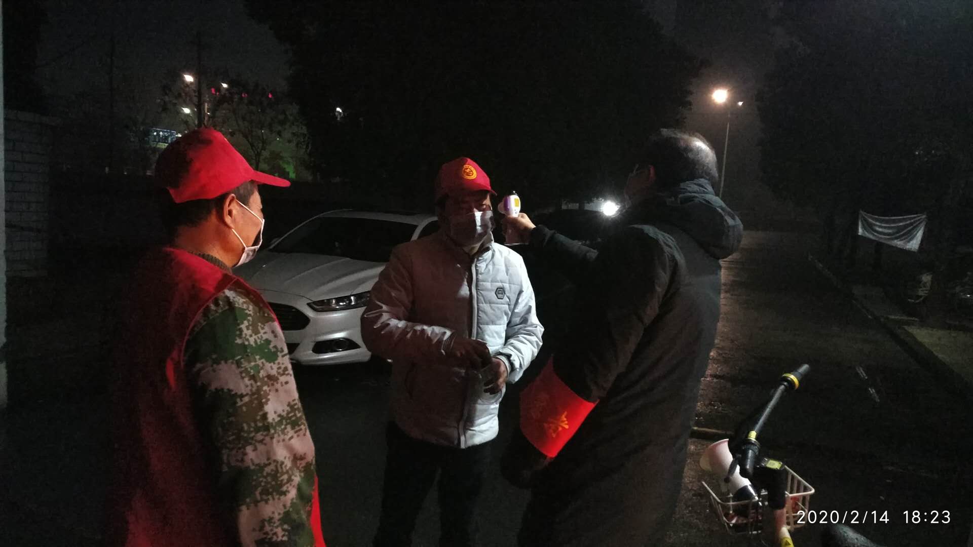 八一二队14名党员志愿者负责2月14至28日期间景山社区八一二队村夜间6点至12点的值班任务。志愿者主要为进出居民体温测量、检查人员和车辆通行证。