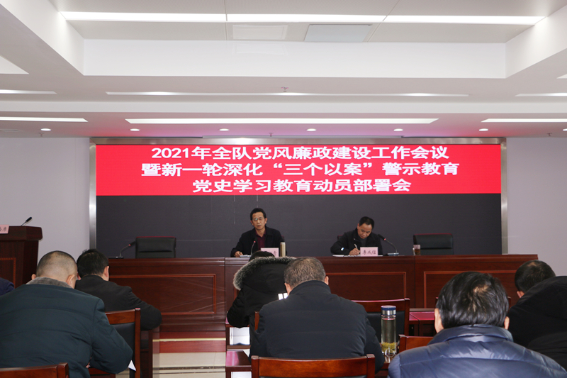 会议传达了局2021年党风廉政建设工作会议暨新一轮深化“三个以案”警示教育动员部署大会精神和局党史学习教育动员大会精神。队党委书记、副队长方柏青针对新一轮深化“三个以案”警示教育和党史学习教育作动员讲话,并对相关工作作出部署安排。