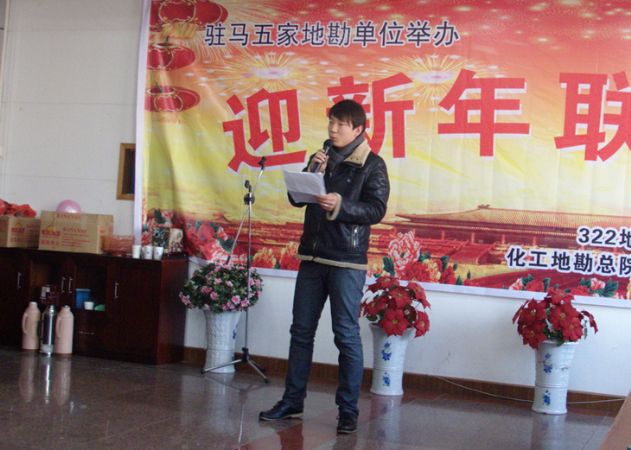 为了加强地勘单位交流和沟通,丰富职工文化生活,综合地质大队、三二二地质队、化工地勘总院、测绘总队、超硬材料研究所五家工会联合举办了一场“迎新年联欢会”。联欢会上,来自五家单位的分工会主席分别介绍了“职工小家”的建设工作。为了展示大学生在地勘单位工作的精神风貌,五家单位各推选了一名新招聘来单位从事地质工作的大学生在联欢会上作了工作情况汇报。为了活跃现场气氛,还开展了“顶气球”、“钢笔字”互动竞赛,五家单位还选出了歌手,在联欢会上进行了表演。