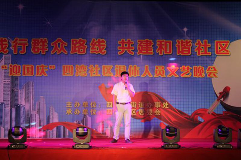 9月26日晚,物探队应邀参加了由共建单位四湾社区举办的“践行群众路线 共建和谐社区”迎国庆社区退休人员文艺晚会,与社区居民共迎国庆。整场演出洋溢着欢乐喜庆的氛围,晚会内容精彩纷呈,舞蹈、器乐演奏、太极拳表演、歌伴舞、独唱等节目接连演出,穿插在晚会中间群众路线教育实践活动内容有奖知识问答,让居民们在观看演出的同时也加深对党的知识的了解。