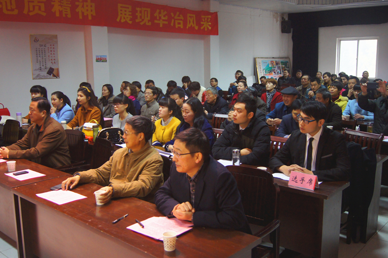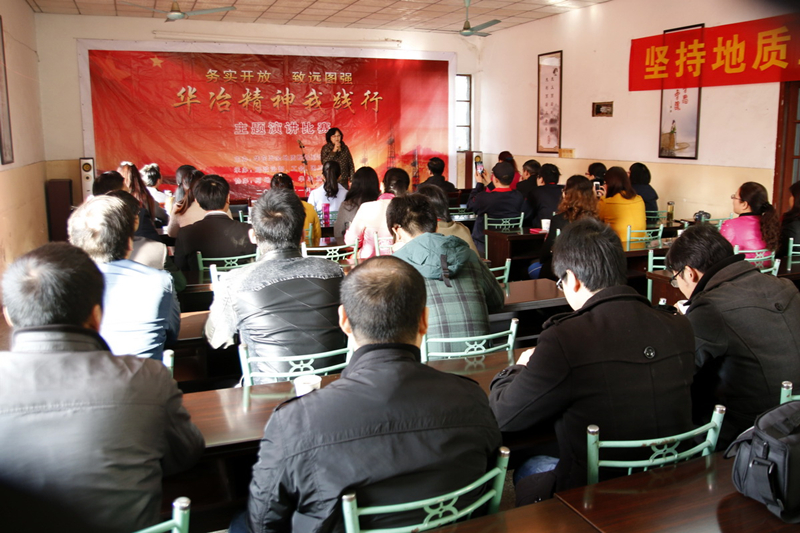 曹阳:一个个详实的案例和事件,每一天枯燥繁重的工作被赋予了新的意义,增加了广大职工的使命感和荣誉感;一组组喜人的数据和报告,勾勒出华冶局上下一心,几十载兢兢业业、勤勤恳恳在地质找矿和经济发展方面取得的显著成效;一个个鲜活的人物和事迹,颂扬了一代又一代的地质人特别能吃苦,特别能忍耐,特别能战斗,特别能奉献的精神。不忘初心,我们从传统的三光荣精神中汲取营养,展望未来,我们从华冶新精神中寻求突破!兼容并蓄,薪火相传,相信随着这次巡回演讲的圆满落幕,“华冶精神”必将在每个华冶人的心中落地生根,在华冶大地上开花结果,引领我们开创更加美好的和谐新华冶!