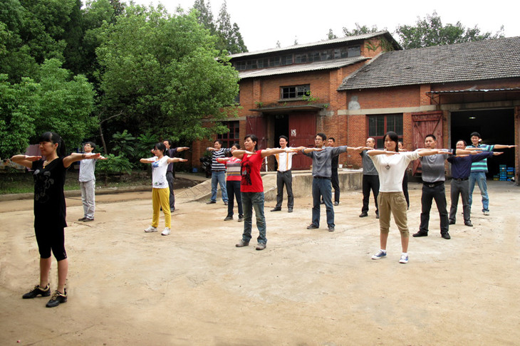 为响应局工会关于进一步推动我局深入开展职工健身活动的工作要求,华东超硬材料研究所将在庆祝新中国成立63周年之际,组织开展职工第九套广播操比赛。所各分工会为培养职工的团队精神及在比赛中能取的好成绩,抓紧时间组织职工进行操练,图为粉末冶金厂职工利用业余时间开展广播操训练。(宁 可 供稿)