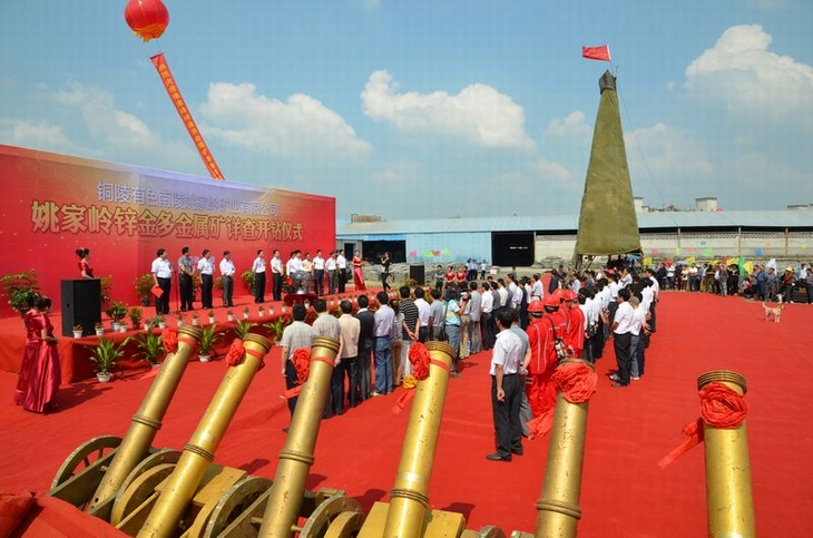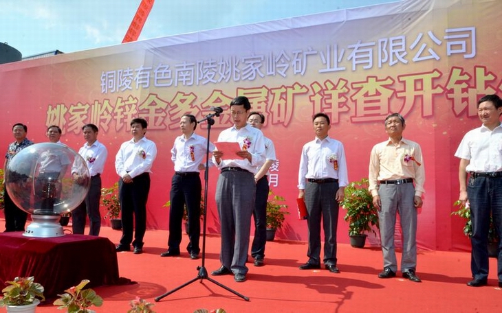 9月16日,铜陵有色公司在南陵县姚家岭矿区举行盛大的详查开钻仪式,标志着为期两年的详查正式启动。有色公司副总经理邵武、铜都铜业股份公司副总经理詹德光,812队长谭洪江、总工程师蒋其胜、副队长王开云,南陵县地方政府领导及有色相关部门、施工人员、矿区周边村民等数百人出席仪式。