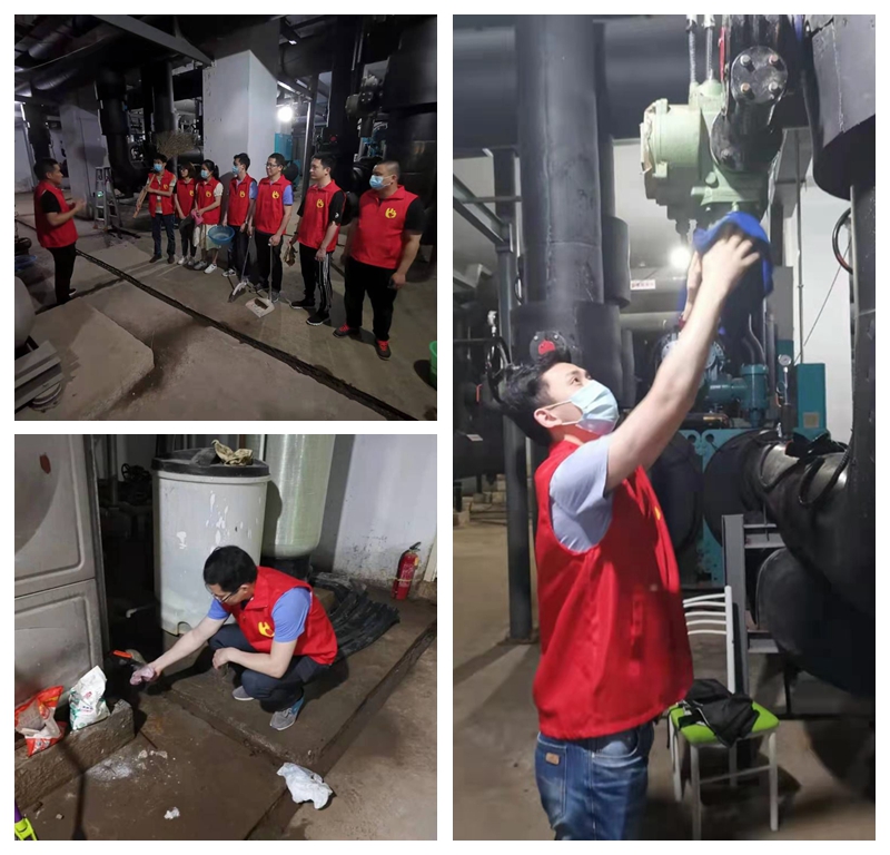 当前已进入夏季,由公司负责维护的居民小区新能源空调即将启用,大家来到公司运管的机房,对机房进行了全面清整,并清洗了水泵、机组等设备。通过大家的辛勤劳动,机房面貌焕然一新?;疃?,运管部经理为大家详细讲解了机房运行原理和运管维保工作情况。