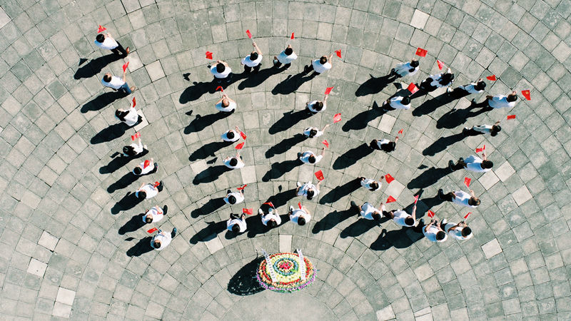 在邓小平同志题词的“皖南事变死难烈士永垂不朽”纪念主碑前,党员干部整齐列队,庄严肃穆,向革命烈士敬献花圈、深深鞠躬,表达对先烈的崇敬与哀思。随后,全体党员集体重温入党誓词,并参观了纪念廊、纪念塔和无名烈士墓等。在纪念碑广场中央,大家整列“100”队型,齐声高唱《没有共产党就没有新中国》,并以科技助力党建,利用无人机进行航拍,向建党百年献礼。