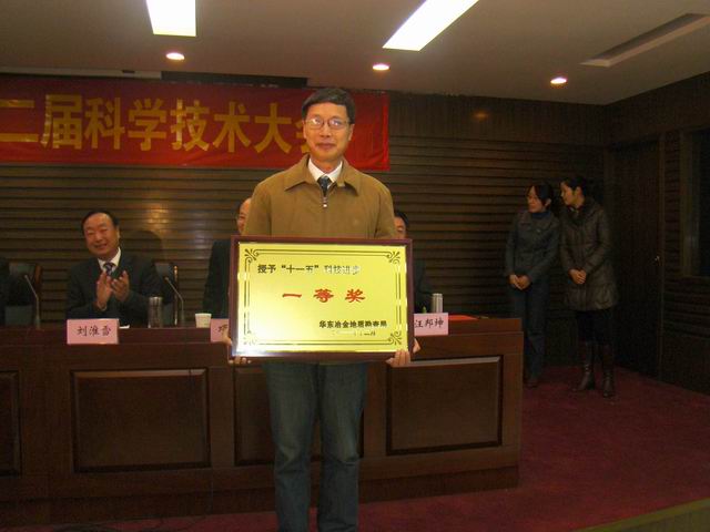 会上,于广陵副局长宣读了局《关于表彰“十一五”期间优秀科技创新成果的决定》。余焰炉副秘书长等省领导以及局领导分别为获奖代表颁奖,期间,汪邦坤副局长还为全国钻探技能大赛铜牌奖和优秀奖获得者颁奖?;窠贝?12队总工蒋其胜和优秀青年科技工作者代表局地勘院方涛分别上台作了发言。