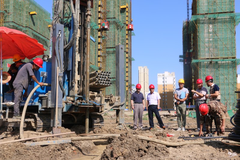 检查组首先深入现场,对正在施工的2台钻机进行全面检查,详细查看各项安全举措落实情况,并针对安全生产、文明施工存在问题进行现场指导,以保证施工安全。随后检查组一行结合项目资料听取了项目部人员对该项目概况、施工工艺、安全质量管控体系等方面的具体汇报。