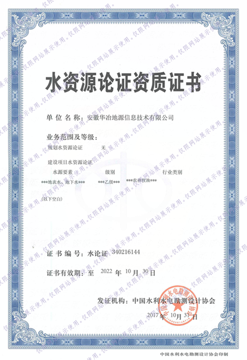 近日,由局地勘院控股的华冶地源有限公司喜获中国水利水电勘测设计协会颁发的水资源论证资质证书。这标志着公司的业务水平、业务范围和综合竞争力得到进一步提高和增强。
