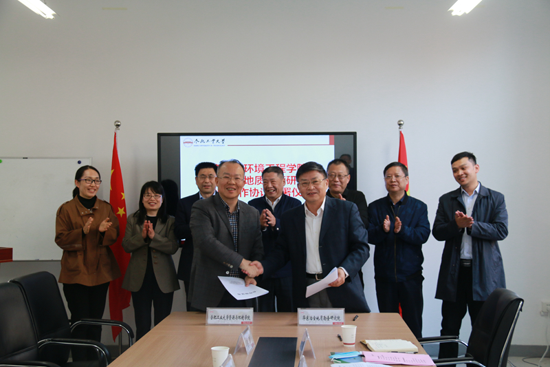 11月12日,地勘院和合肥工业大学资源与环境工程学院战略合作协议签约仪式在合工大举行。地勘院院长刘令胜、合工大资环学院院长袁峰分别代表双方签订协议。合工大资环学院党委书记李强、副院长牛漫兰及各系教学负责人,地勘院领导班子成员及有关部门负责人出席签约仪式并参加座谈会。仪式由资环学院副院长牛漫兰主持。
