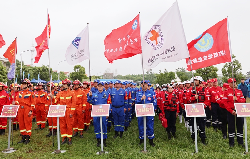 5月5日上午,安徽省暨合肥市“5·12”全国防灾减灾日主题宣传周、“五百”宣传活动启动仪式在巢湖市中庙街道举行。省、市、县减灾救灾委共60多家成员单位参加,现场开展防灾减灾宣传、咨询、成果展示等系列活动?;钡卦钟敝行?2名职工作为合肥市地质灾害应急救援队队员参加此次主题宣传活动。