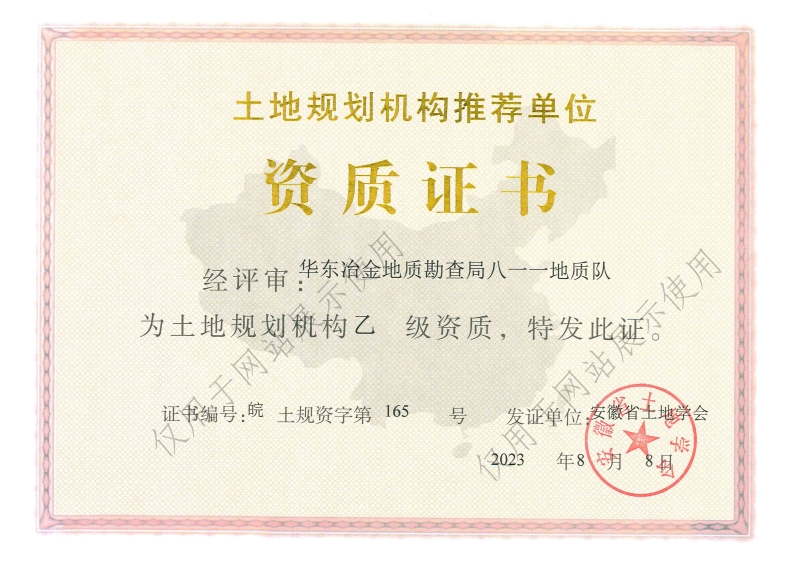 近日,八一一队资质升级工作传来喜讯,分别经安徽省自然资源厅和安徽省土地学会审核,取得了地质灾害评估和勘查设计甲级、土地规划机构乙级资质。