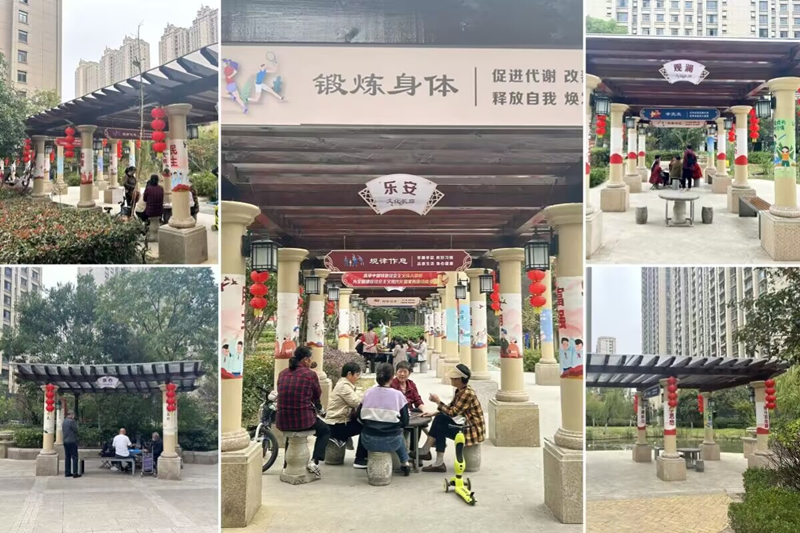 此次改造充分利用万象公馆南北区4个居民休闲长廊空间,在入口、廊柱及屋檐侧添加了社会主义核心价值观、廉政文化等主题宣传内容,营造了良好文化氛围和文明气象。此次升级改造还进行了旧遮光板、毁坏休闲桌椅等设备更换,原木防腐刷新,防腐木座椅、长廊内照明灯、太阳能驱蚊灯等设施设备添置等工作。业主休闲生活环境得到了改善,小区景色也增添了新亮点。