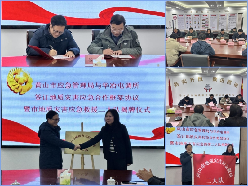 12月29日,屯调所与黄山市应急管理局签订地质灾害应急合作框架协议暨市地质灾害应急救援二大队揭牌仪式。该所党委书记、所长秦建芳,黄山市应急管理局党委委员、副局长吴永杰出席仪式并致辞,该所副所长钟耀成和黄山市应急管理局副局长吴永杰代表合作双方在协议上签字。所有关部门负责人和黄山市应急管理局相关科室负责人参加了签字仪式。