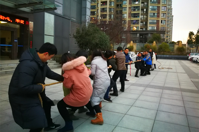 12月29日下午,机关分工会在地质科研大楼前举办了“庆元旦”拔河比赛,机关全体人员参加了比赛。随着裁判的一声哨响,参赛选手们紧握长绳,卯足了劲,后仰、蹬腿、拉绳,使出全身力气将绳索拉向各自队伍方向,在来来回回的拉锯战中,队员们齐心协力、拼尽全力,不到最后一刻绝不放弃,充分展现了团结协作、奋力拼搏的团队精神。